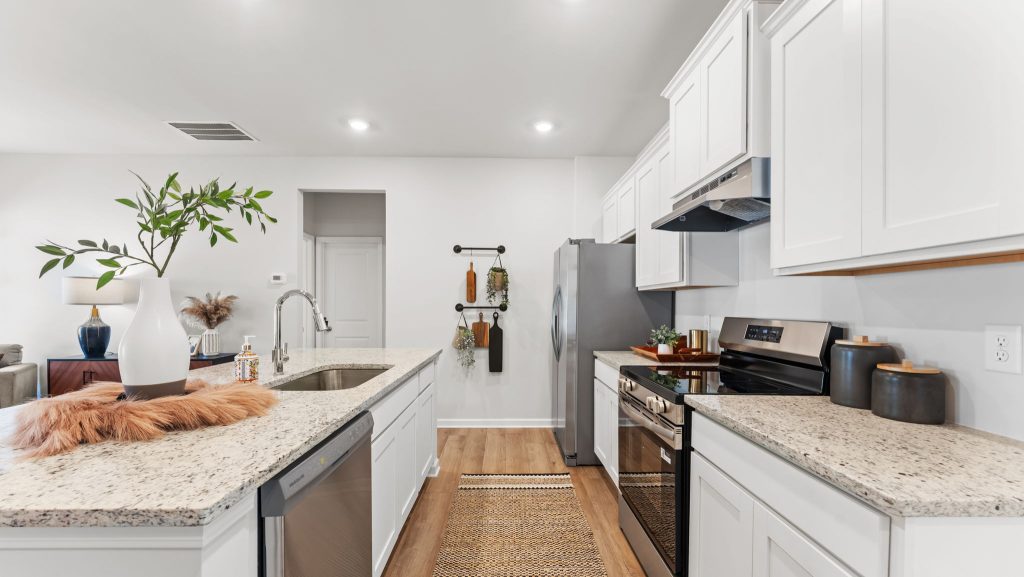 Enjoy over 1,300 sqft of single-level living in this 3-bed, 2-bath ranch thoughtfully designed for everyday family life. This simple, yet refined floor plan emphasizes connection while offering modern comforts throughout