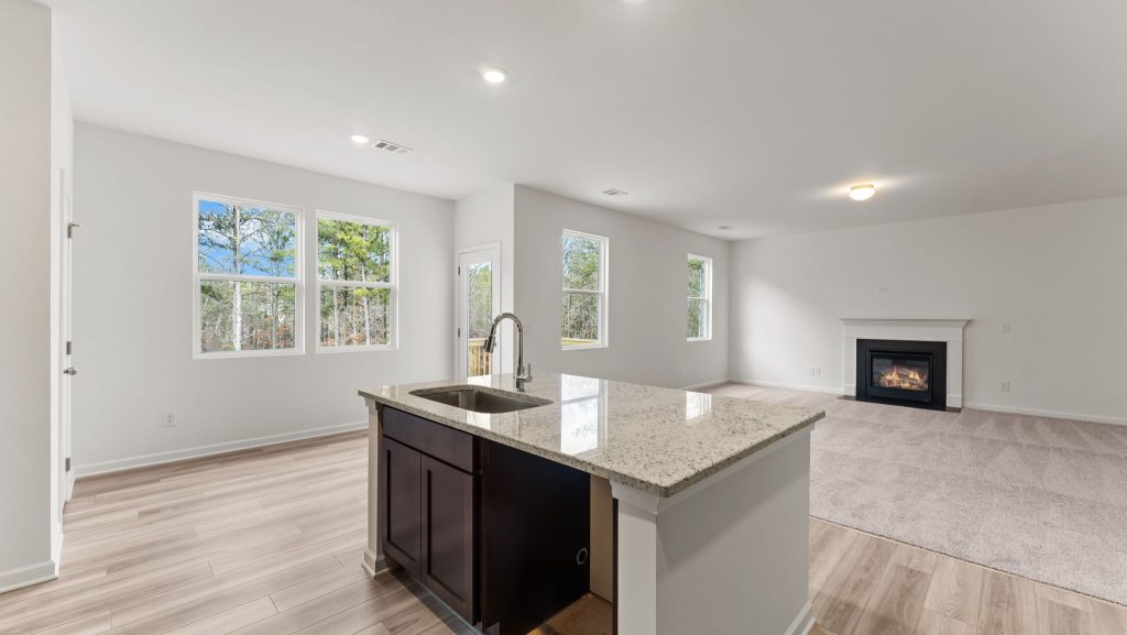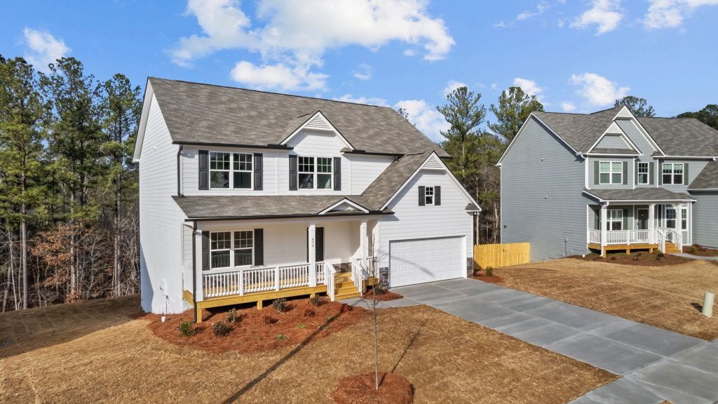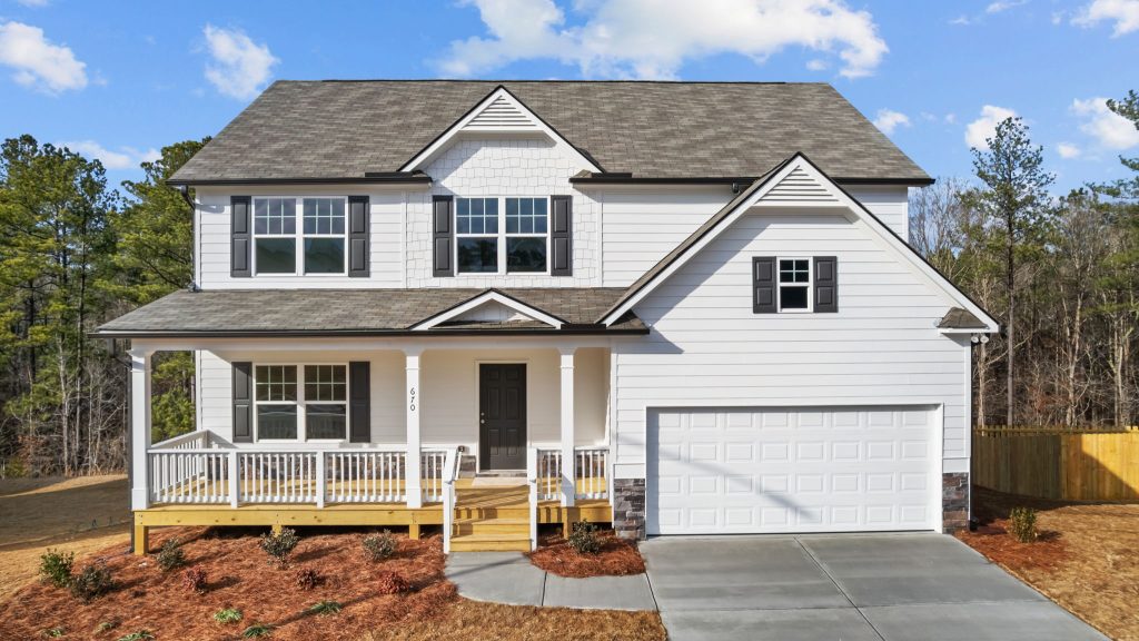 4BR/2.5BA/Craftsman-style home with inviting covered porch entry. Grand open living on main with openings between living and dining rooms. Kitchen with island opens to family room. Upstairs 3 bedrooms with spacious closets and master with trey ceiling, French doors lead into master bath.